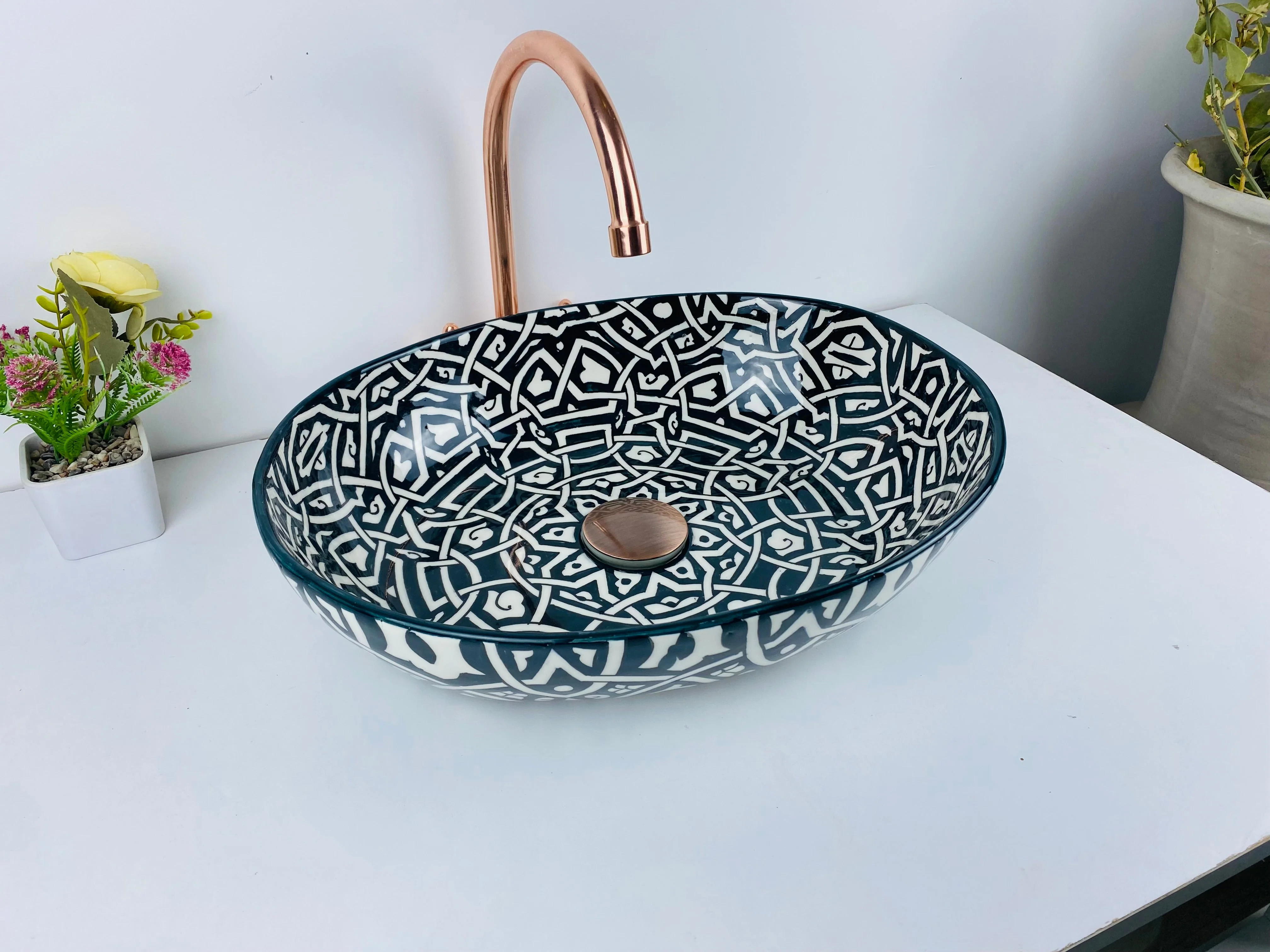 Bathroom vessel sink made from ceramic 100% handmade hand painted, ceramic sink decor built with mid century modern styling