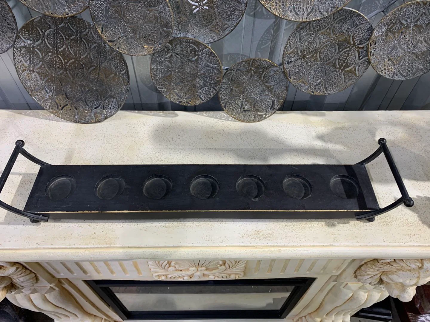 This is a long feature that is table top with hanging 8 glass candle holder inside